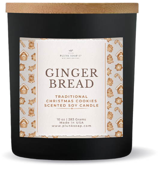 Gingerbread Cookie Scented Soy Candle 10 oz Black Jar with Bamboo Lid