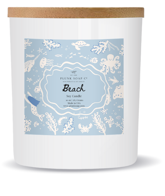 Beach Scented Soy Candle | Fresh & Coastal Scent |l Home Fragrance | 10 oz White Jar with Bamboo Lid